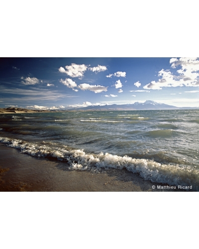 At 4,600 meters above sea-level (15,000 feet) and with an area of 320 square kilometers, Lake Manasarovar is the highest freshwater lake in the world. Situated near Mount Kailash and the Gurla Mandata, which rises at 7728m (25,350 feet) is also knows as 'the Invincible Turquoise Lake', 'Anavatapta', 'Lake of Eternal Freshness' and 'Lake of the Divine Lotus'. Pilgrims take four days to walk around the sacred lake. Eastern Tibet, 1998. Buy on-line a fine art photographic print, signed by the hand of Matthieu Ricard, buddhist monk, photographer and author. He has also been the French interpreter of His Holiness the XIVth Dalai Lama since 1989. Some of the photographs in his collection are printed in limited edition, signed, numbered and delivered with a certificate of authenticity.