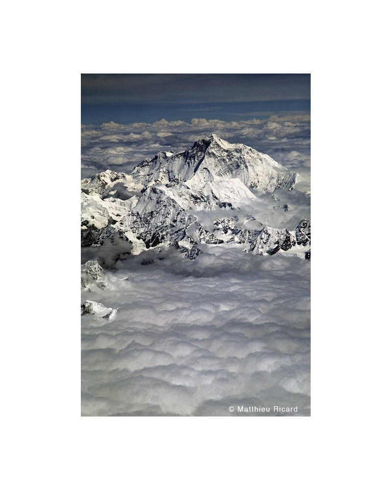 Le Makalu (8 463 mètres) vu d’avion lors du vol entre Kathmandou et Lhassa. Le Makalu est situé non loin de l'Everest, à une vingtaine de kilomètres à vol d'oiseau. Mais son accès est très différent de celui de l'Everest. Il réside dans le massif népalais du Khumba karna. Offrez-vous un tirage photo de qualité expo, signé de la main de Matthieu Ricard, moine bouddhiste, photographe et auteur. Il est aussi l'interprète français de Sa Sainteté le XIVe Dalaï-Lama depuis 1989. Certaines photographies de sa collection sont tirées en édition limitée, signées, numérotées et livrées avec un certificat d'authenticité.